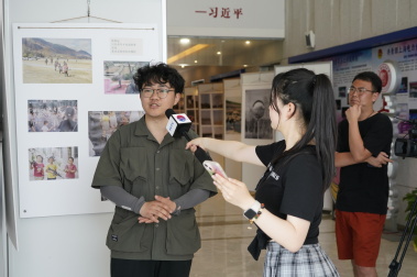 开幕仪式中,参与联展的主创同学为大家介绍了自己摄影作品的创作思路,分享了自己的摄影故事以及对摄影与生活的理解。随后,许晶对同学们创作的摄影作品给予了充分的肯定,并希望同学们通过艺术的形式启迪思想智慧,激发创造活力,培养高尚健康的品格。仪式最后,周洁明宣布大学生艺术团摄影创作工作室三人摄影联展开幕。