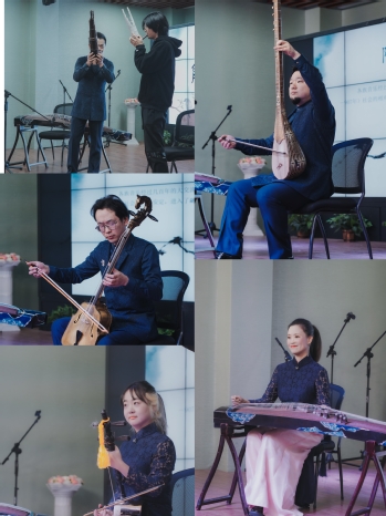 活动现场还增加了师生互动环节,我校大学生民乐团的学生们在赵臻老师的现场指导下体验了笙的吹奏,并与赵老师即兴合奏曲目一度将现场气氛推向高潮。