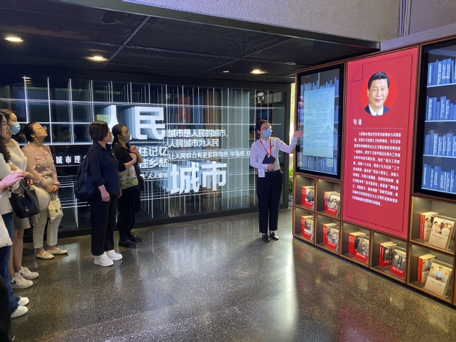 太阳集团城娱8722全体教师来到展示馆一楼“人民城市理念”空间,集中学习了这一重要理念的发展概述、理论渊源、丰富内涵和时代价值。站在人民城市理念的首发地,全体教师体验了“工业锈带”蝶变为“生活秀带”的场景转化,切身感悟了这一理念的深刻内涵。在参观接下来的“人民城市理念的上海实践”、“上海城市最佳实践案例”等空间时,通过数字化、艺术化、体验式的展示,教师们对人民城市理念的顶层设计与基层实践有了更深层次的感悟。