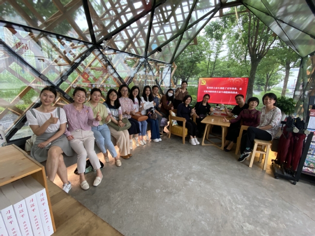 参观展示馆后,全体教师来到杨浦滨江“人人屋”党群服务站,在这个小驿站里,习近平总书记曾详细询问这里开展基层党建和公共服务的情况。教师党员们认真聆听了这个城市基层党建工作的新阵地在价值凝聚、服务引领、平台建设等方面的优秀做法,并对于如何把党的组织优势更好转化为治理效能、用心用情用力为人民办实事进行了交流探讨。