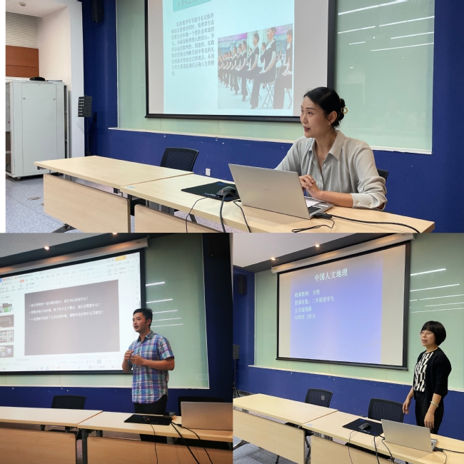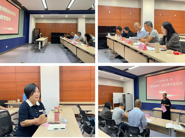 本次“课程思政”示范课评选活动经人文、艺术教研室遴选,分别推荐安艳老师的《中国人文地理》、马晨老师的《礼仪与人生》、浦育川老师的《手机摄影实践》三门课程进入现场展示评选。在现场展示环节,三位老师根据授课课程特点,深入挖掘课程的思政元素和育人功能,运用形式多样的教学方法,多方面、多层次展示了各具特色的“课程思政”教学环节设计。三位评委老师根据“课程思政”示范课评选标准对老师们的表现进行打分,同时从课程思政建设的思想政治教育内容选择、课堂授课技巧、课程内容展示等角度对三位教师进行点评并进行一对一的现场教学指导。
