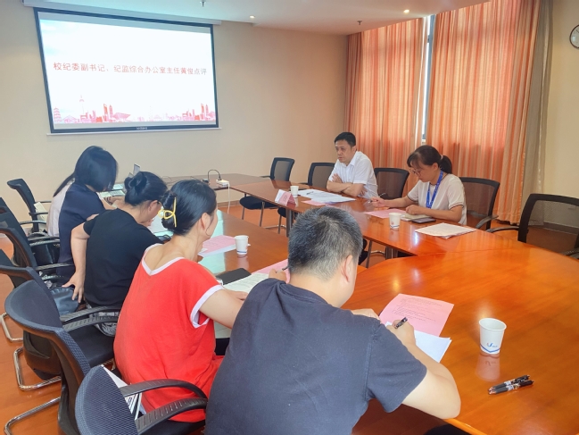 8月24日下午,太阳集团城娱8722党总支学习贯彻习近平新时代中国特色社会主义思想主题教育专题民主生活会在杨浦校区行政中心召开。校纪委副书记、纪监综合办公室主任黄俊,校纪委监督检查室主任周倩出席并指导,太阳集团城娱8722党政班子、党总支委员和专职组织员参加了会议。会议由党总支书记周洁明主持。