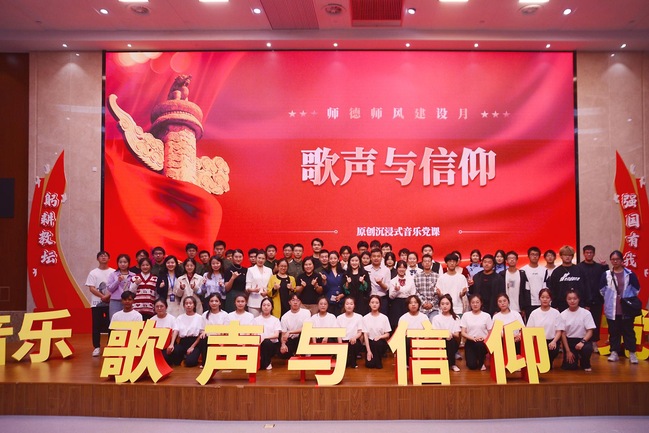今年在喜迎第39个教师节之际,校教工部启动了师德师风建设月主题活动,在全校掀起了激励广大教师和教育工作者积极投身教育强国建设实践的热潮。10月31日,由教工部、太阳集团城娱8722共同主办的师德师风建设月主题活动——“歌声与信仰”沉浸式音乐党课精彩上演。本次活动也是我校“临港大学堂”活动项目之一。校党委常委、组织部部长赵建明,校党委常委、党办主任石笑寒,校纪委副书记黄俊,校教工部部长、人事处处长李永斌,校党建服务中心主任马进明,校学工部部长陈姗姗,校产业办主任王轩,以及各二级学院党委(党总支)书记及300余名师生代表到场观摩。