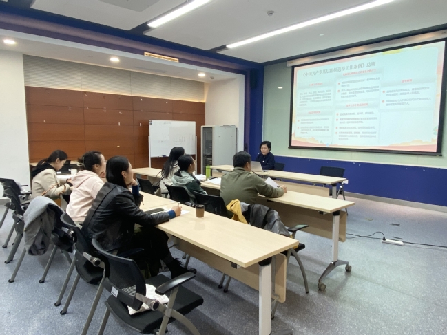 动员讲话后,周洁明和曹晓声分别领学了《中国共产党基层组织选举工作条例》和《中国共产党党员教育管理工作条例》。