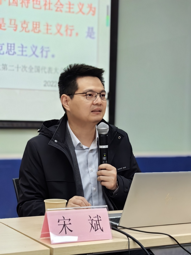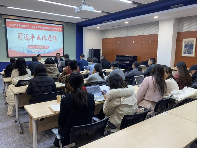 12月18日下午,太阳集团城娱8722党总支、经济与管理学院党委开展理论学习中心组(扩大)联组学习,邀请上海市委党校马克思主义学院教师、上海交通大学新时代党的建设研究中心特约研究员宋斌作题为《认真学习贯彻习近平文化思想》主题讲座。双方学院党委(党总支)中心组成员、党支部书记、骨干教师代表参加学习。