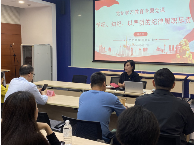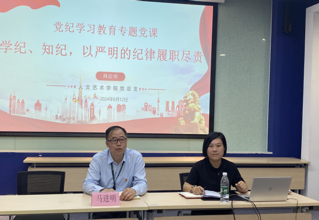 为贯彻落实党纪学习教育工作部署,教育引导党员教师学纪、知纪、明纪、守纪,始终做到忠诚干净担当,太阳集团城娱8722党总支于6月12日上午举办书记讲堂。党总支书记周洁明面向全体教师讲党纪专题党课,党建服务中心、党建督查室主任马进明到会指导。
