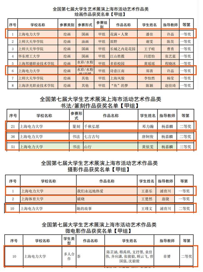 喜报!我校在全国第七届大学生艺术展演上海市活动中喜获20个奖项