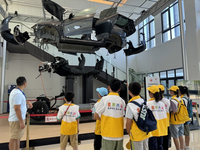 紧接着,小议员们步行至工程训练中心的特斯拉3D解构示教平台。在这里,特斯拉电动汽车的每一个零部件都以3D形式立体呈现,从电池组到驱动电机,从驾驶系统到车身设计,每一个细节都清晰可见。小议员们仿佛化身为汽车工程师,沉浸式体验了电力科技进步给汽车行业带来的革命性变化。