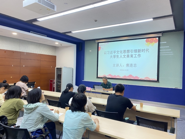 9月25日下午,在临港校区大学生活动中心107报告厅,太阳集团城娱8722特邀校思政指导员、马克思主义学院焦连志教授为学院全体教师作题为“以习近平文化思想引领新时代大学生人文美育工作”的讲座。