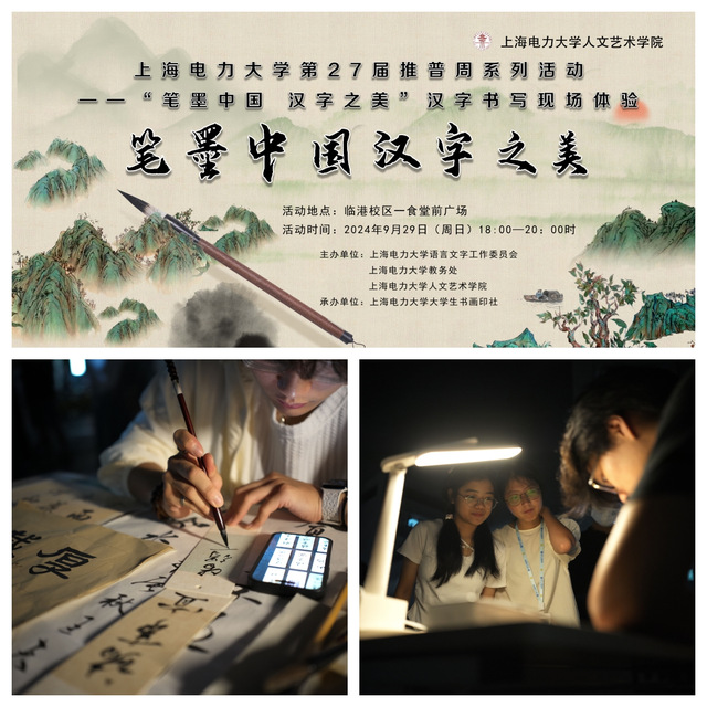 为展现中华优秀传统文化与国家通用语言文字的完美融合,提升我校学生语言文字应用能力,9月29日,第二十七届全国推广普通话宣传周系列活动之“翰墨传韵·语同音合”汉字书写活动在我校临港校区学生生活社区内举行。此次活动由校语言文字工作委员会、教务处、太阳集团城娱8722联合主办,校大学生书画印社承办。该活动旨在将汉字文化融合书法艺术,通过传统书法书写与体验、书法艺术作品、篆刻文化展示交流等形式,展现中华文化的独特魅力,激发学生对汉字文化的兴趣和热爱。