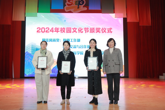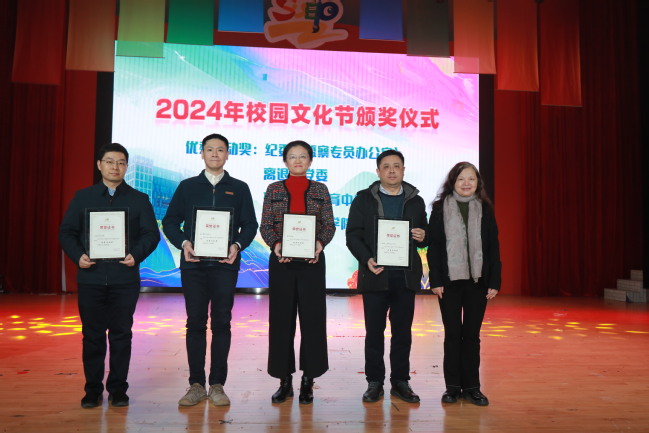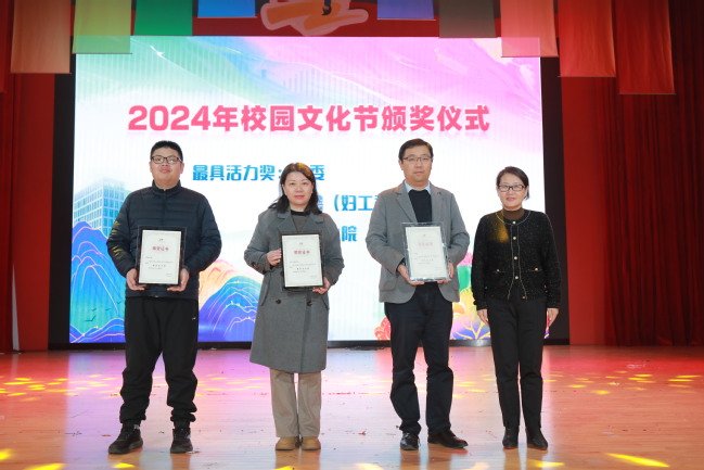 在2024年校园文化节优秀活动颁奖上,顾春华为2024年校园文化节“优秀组织奖”获奖单位颁奖。